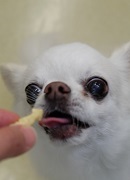 私に「ウーはなしだよ!」と釘を刺されながら、ポチちゃんと私の膝を相席😂
